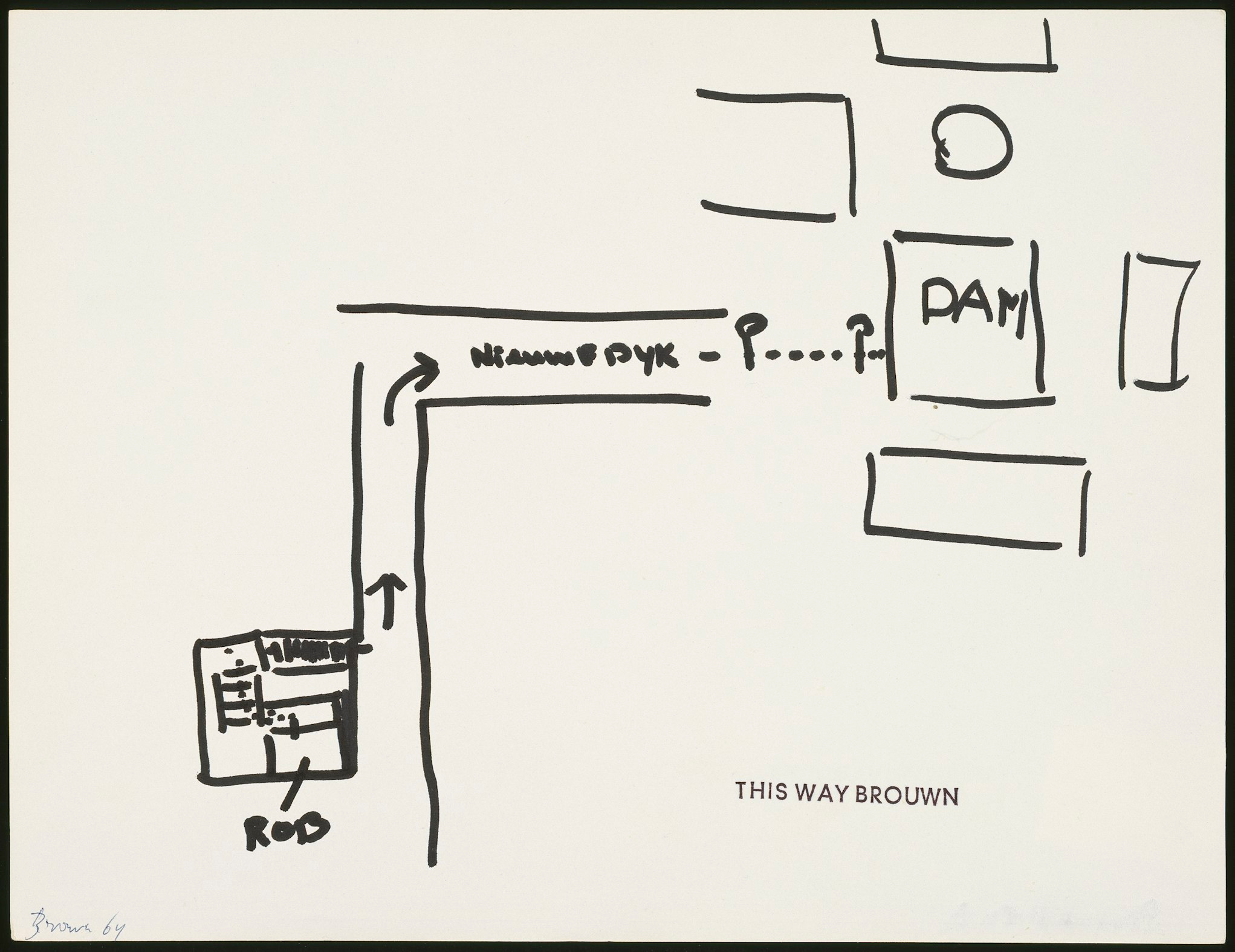 The premise of This Way Brouwn is beautifully simple and irreducibly participatory: like many of Acconci’s later works, it only takes its proper shape in the hands of people who are not the artist. Take a second to image-search “This Way Brouwn,” and enjoy for a moment the sheer variety of map-direction artifacts that were produced over the course of Brouwn’s project. (This one is a particular favorite.) One of the aspects that makes the piece so compelling is that Brouwn’s “ask” is a seemingly closed task: just asking for directions from one place to another. If both parties had a map there’d be nothing here at all, just a finger dragging along prescribed streets. But the way Brouwn invites the participants to put, not just their directions, but their whole mental models of the city on the paper—to me, that’s the real there there. The particular felt so straightforwardly knowable, earlier, in contrast to unwieldy universals, but suddenly now we see how people have come to know that particular: concept-ladenly, through a framework that leaves its fingerprints on the glass of perception. These maps in folks’ heads would be jarring if they didn’t gel with our own—or, if you’re like me and haven’t been to Amsterdam (in which Brouwn occasioned This Way Brouwn), you can admire how they simply sing with unbridled plurality.