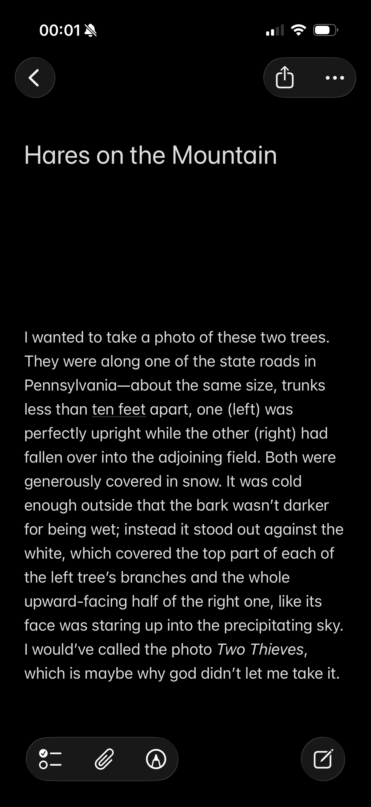 I’m trying to get better at thinking of this Substack as a more heterogeneous space—not just poetry, but also math, & also philosophy, & also (maybe) new creative work. Here is a small prose poem that came out of today’s post (title from here)—thank you very much for reading, and for your continued support in 2026; it means the world! :)